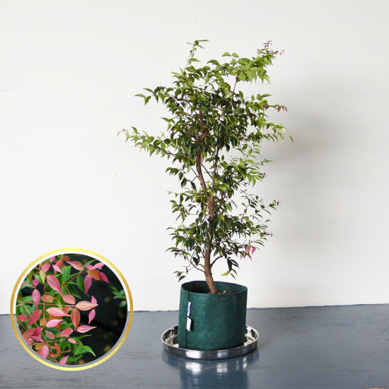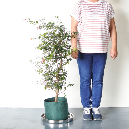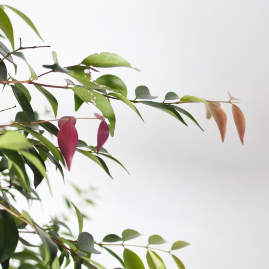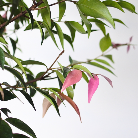 ・春と秋の年2回、小さな白い花を咲かせます。さらに新芽は鮮やかなピンク色で、成長すると緑に変わるため、葉色の変化を楽しめます。
