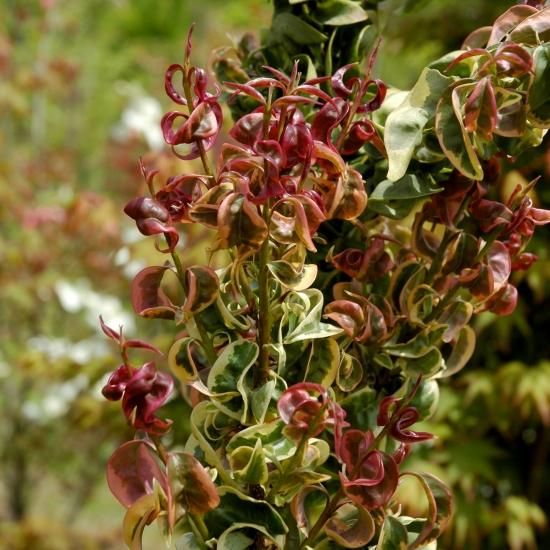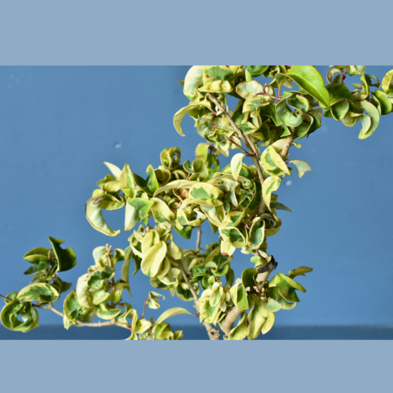 カールした葉っぱかつ斑入りという、かなりユニークな見た目です。ネズミモチシーバーループ