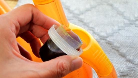 キャップに液体を流し入れた時、茶色の液体でちょっとびっくりしますが、匂いは全くありません。本当に無臭です。堆肥というと、匂いが強そうな気がしますが、土いきかえるは全くしないのです。
