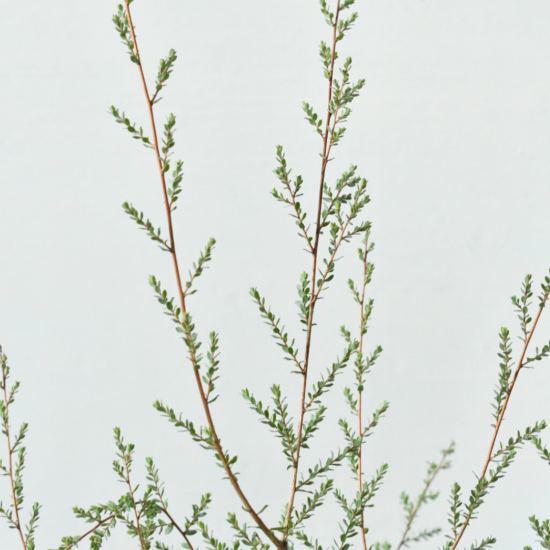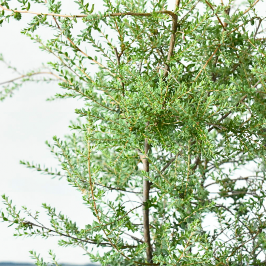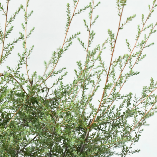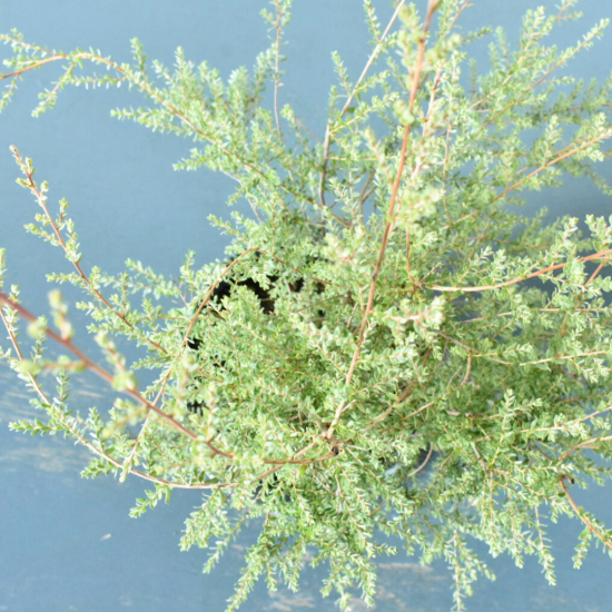 病害虫がつきにくく、樹形も自然にまとまりやすいのが魅力。生長はゆるやかで、剪定も最小限で済みます。シルバーリーフの中でも特に育てやすいティーツリーで、管理のしやすさを重視する方にも好まれています。