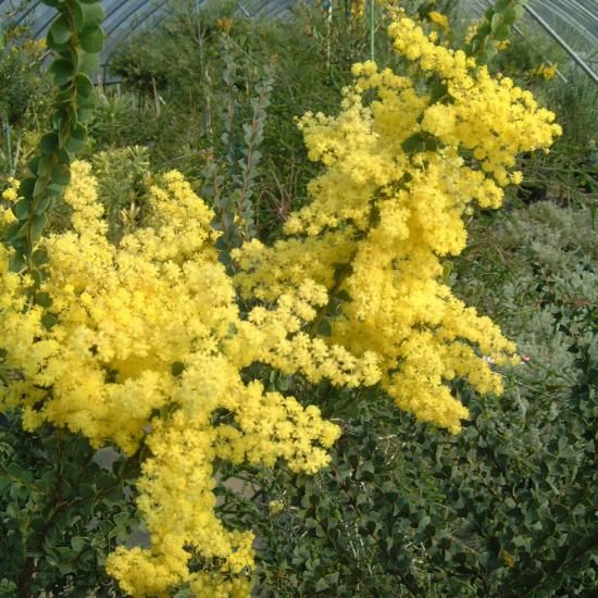 アカシア・オーブンズワトルは、春と秋の年2回にわたり、枝いっぱいに花をつける華やかな品種です。