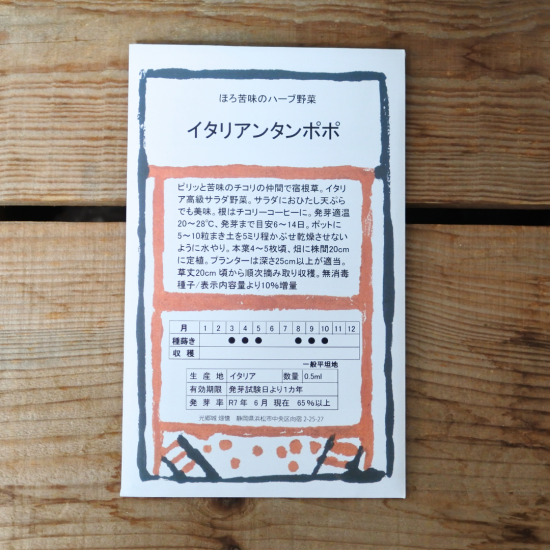 量:0.5ml(約160粒)/ まきどき:3-5月・8-10月(目安)/ 収穫期:通年(目安)/ 発芽率:65%以上/ 生産地:イタリア/ 有効期限:26年6月まで/ 無消毒種子