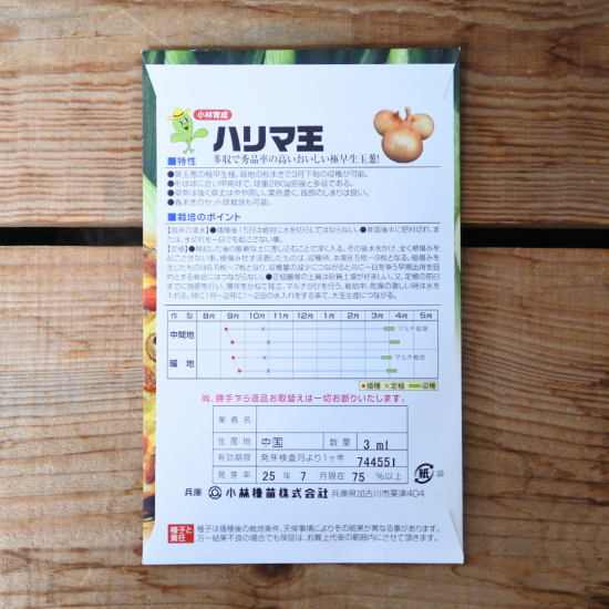 タマネギ  ハリマ王 (3ml入) 小林種苗