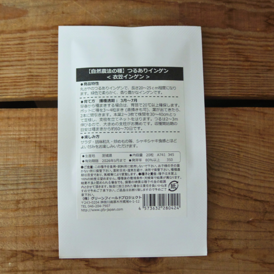 つるありインゲン 衣笠インゲン (20粒入) [自然栽培の種・固定種・国産] グリーンフィールドプロジェクト