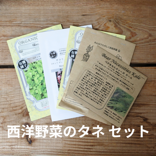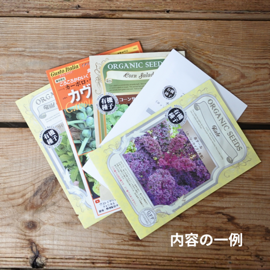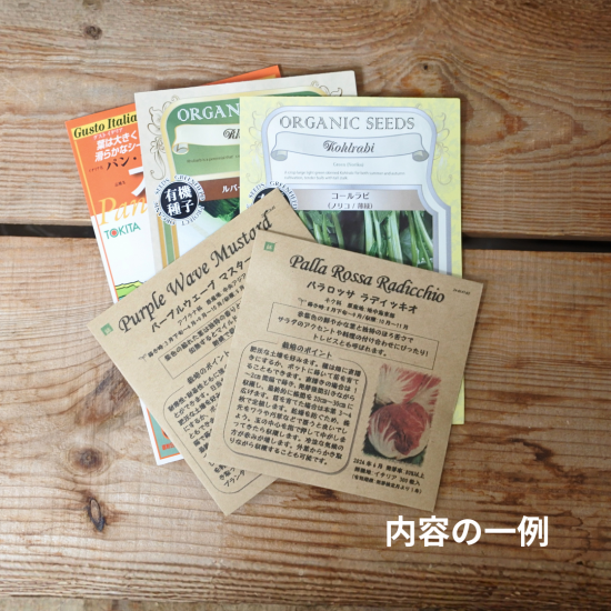 例として、チコリ、ケール、コールラビなど、バラエティに富んだ西洋野菜のタネが入ることがあります。(※品種指定はできません)